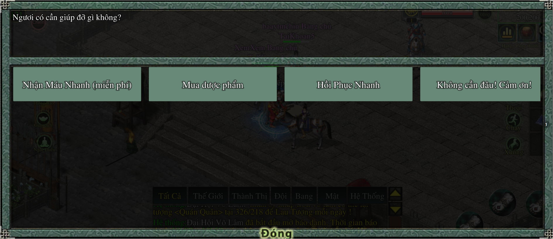 Yêu cầu có: Lệnh Bài Đại Hội Võ Lâm